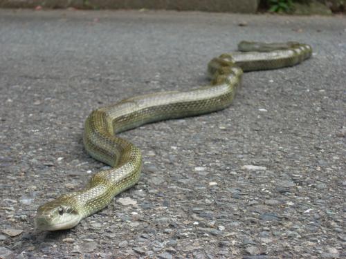 市内で見られるアオダイショウや二ホンマムシなどのヘビは、もともと自然に生息している生き物ですので、市では捕獲や駆除はしておりません。
