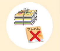 Amarre-as em forma de cruz com barbante antes de descartá-las. *Álbuns são considerados “lixo incinerável”.