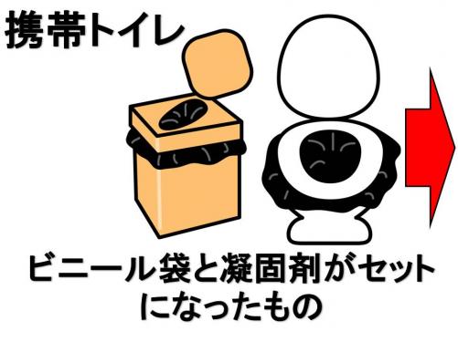 (注)携帯トイレとは、ビニール袋と凝固剤がセットになっている「非常用トイレ」のことです。