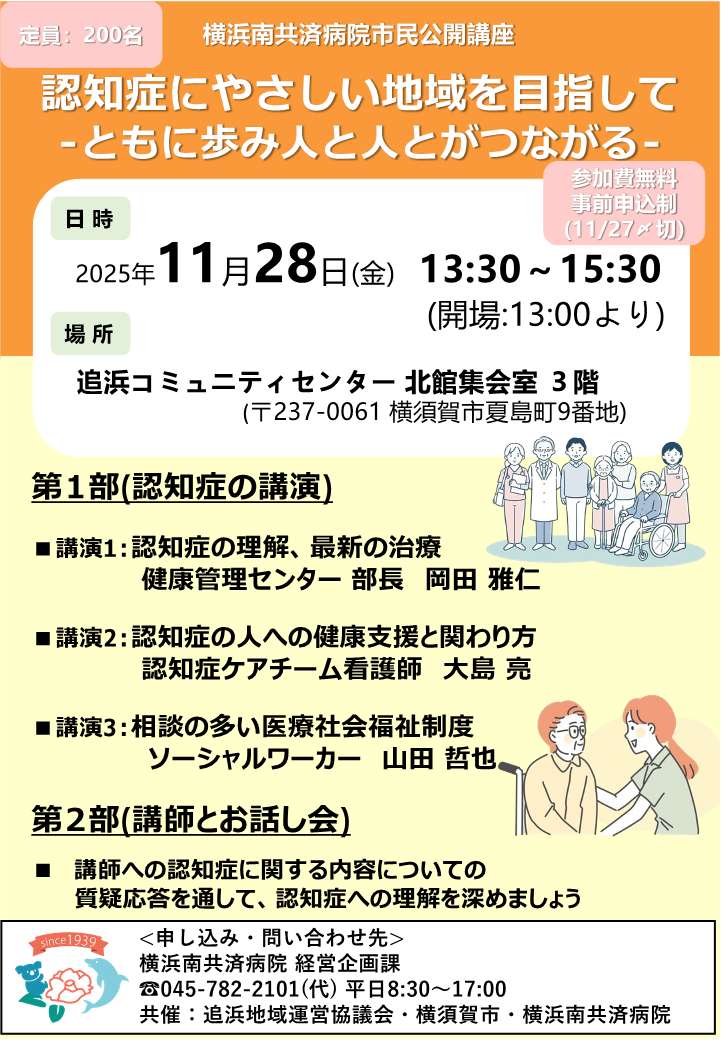 申し込みは電話で、横浜南共済病院経営企画課へ。